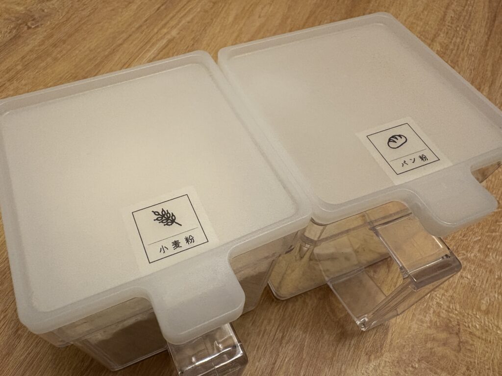 私はこんなふうに保存容器にラベルを貼って、一目でわかるようにしてみました!