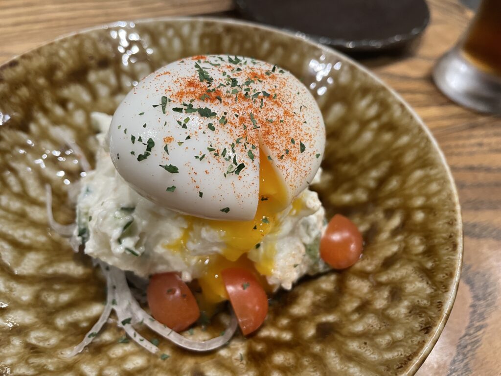 じゃがいもだけでなく、オニオンやトマト、そして半熟卵。